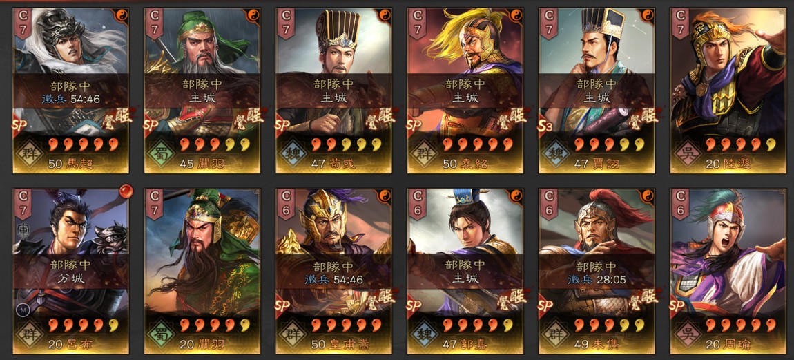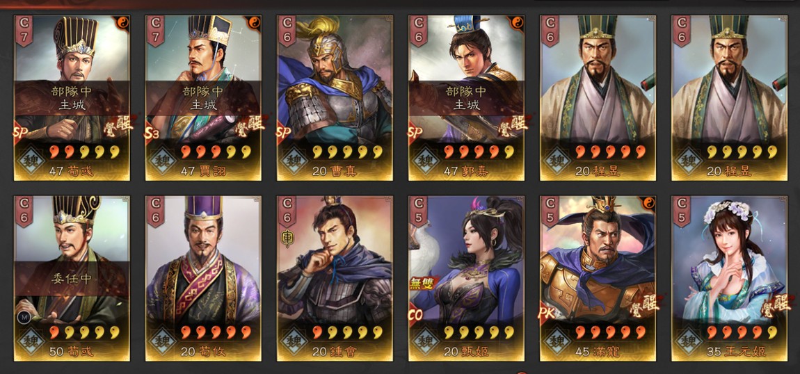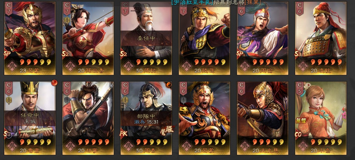 肚子還有 無雙甄姬 無雙星彩 姜維 老周瑜 SP黃月英x2 司馬懿 王異 無雙呂玲琦 無雙大橋 于吉 張遼 龐統 魏延 郝昭x2