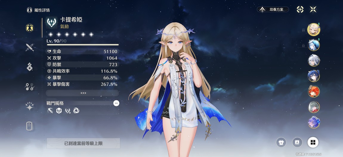 【75等、20金角、7金武】卡提5+1 弗 坎 日 月 守 嘉貝 維2命