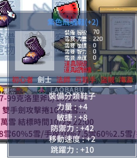 【劍士裝】40屬套服、9攻7力手、12屬鞋、109攻+6冰槍