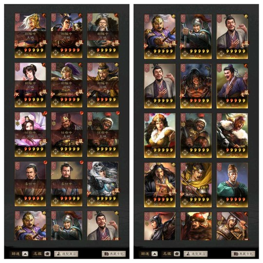 武將參考截圖,主要隊伍:核彈張(有號令、雄烈)、姜維飛熊騎、富貴騎、荊州弓(SP周瑜、sp呂蒙、魯肅)、香香吳騎、太尉盾。