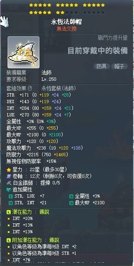 【永恆法師帽】22C36%智附加傳說+2智+7%智B卷