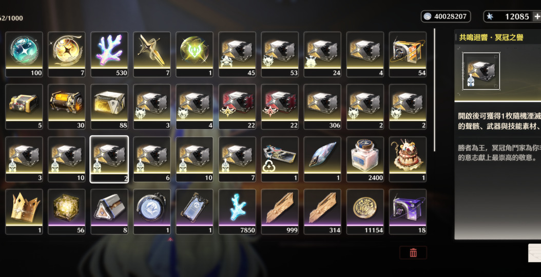課金物有月卡武器箱xN沒開, 近2.4k月相, 今汐,散華和二小姐皮肤;
