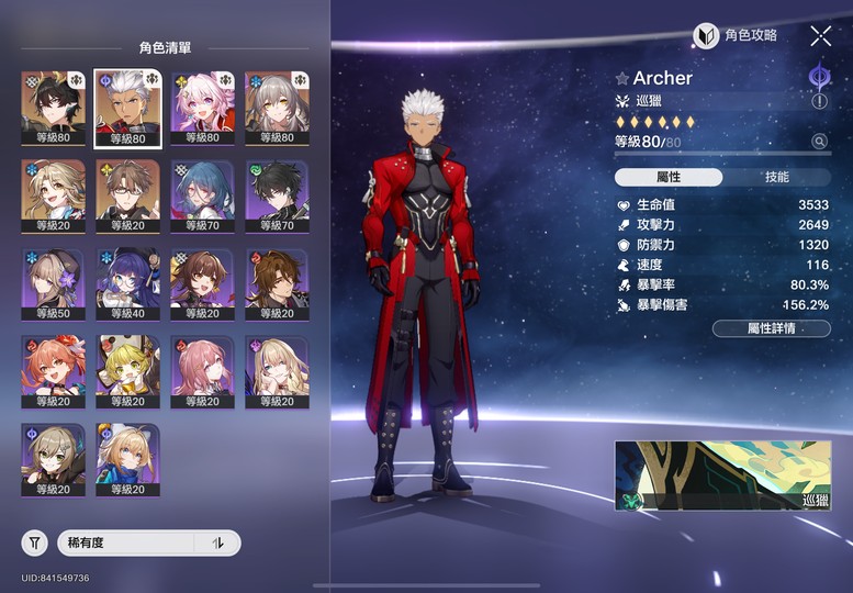 【女、62等、4金角、1金專】23專票+70360星穹 備戰之後版本