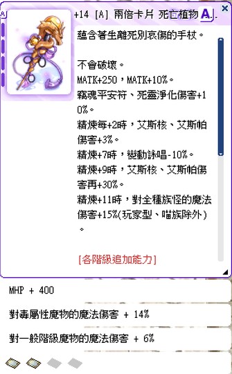 +13懺悔靈氣冠冕/+14A懺悔覺醒巫杖 毒屬性14%一般6%