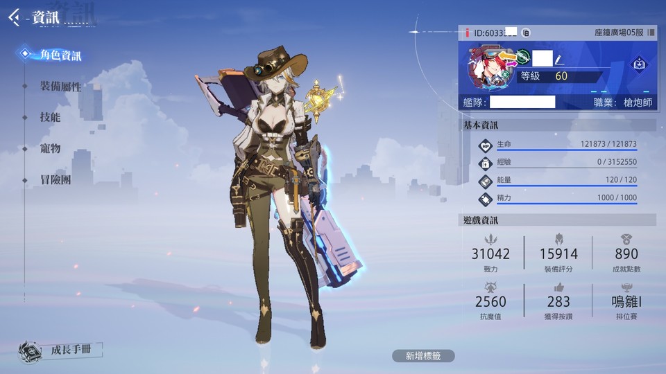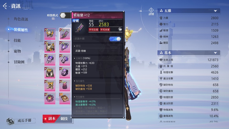 【60等】座鐘05 槍砲師 戰力31042 武器紫羅蘭+12 金幣126.5萬