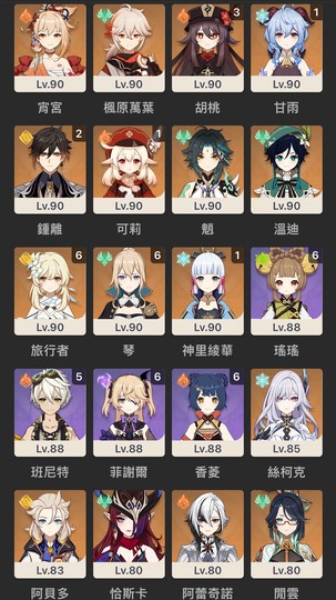 愛可菲 0命 絲柯克 0命 菈烏瑪 1命