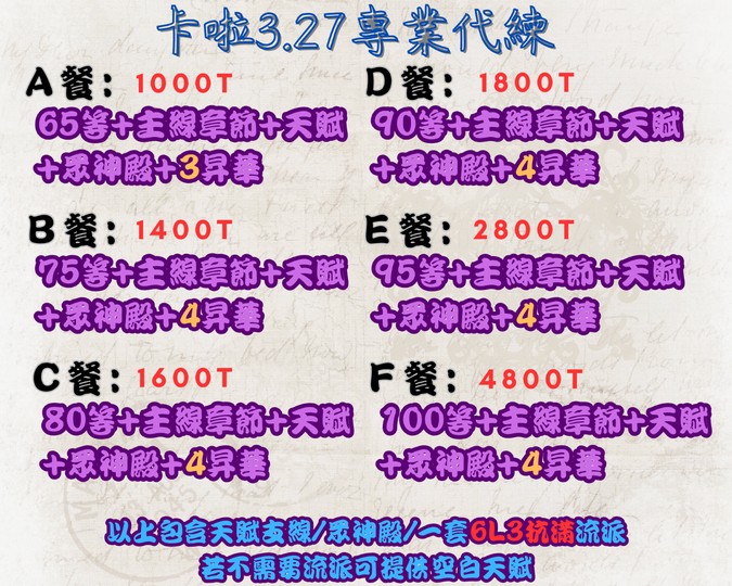 ⎛🐱卡啦代練⎞3.27台服賽季🔥神聖4T🔥65等1000🔥幸運圖虛空石