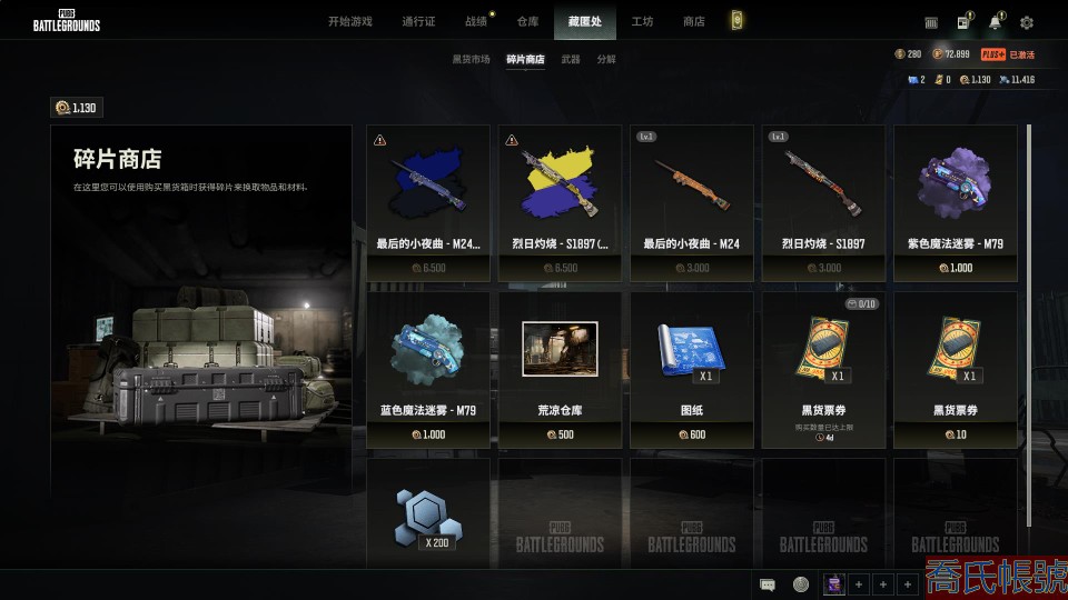 生存等級1264;成長型武器4;槍皮159;載具25;熱門物品:PGC2021