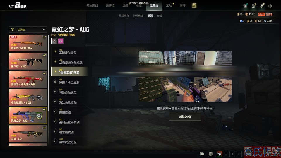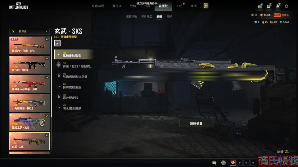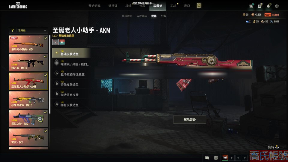 生存等級1185;異色皮膚2;成長型武器9;槍皮123;載具11;異色皮膚: