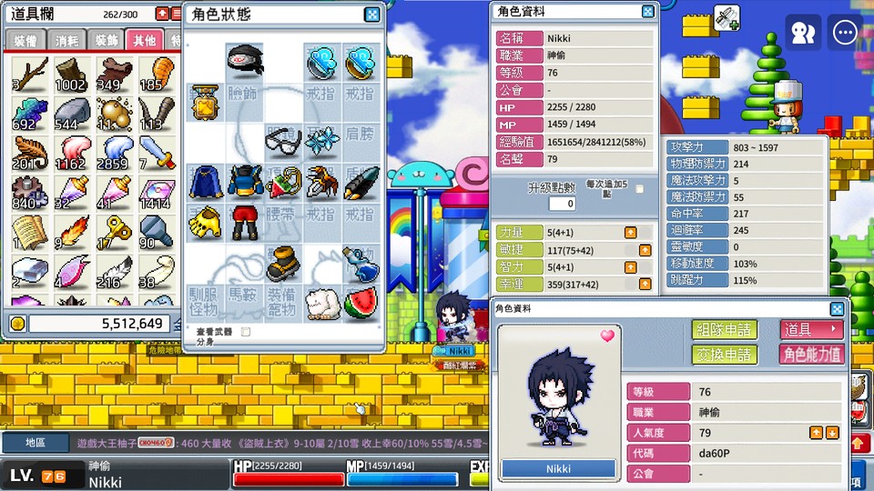 【76等、神偷_暗影神偷】退谷出售 76等神收 手動帳號 有寵物、自由造型卷