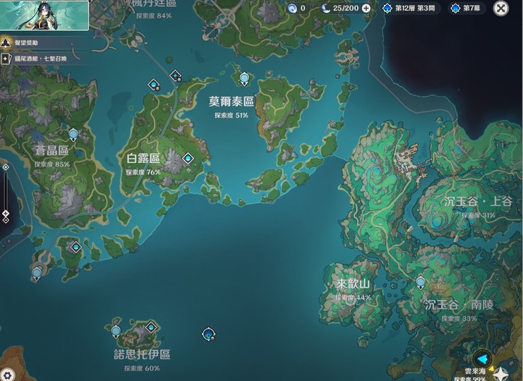 深淵都能滿星,地圖滿探索只剩楓丹如圖, 主線全部推完