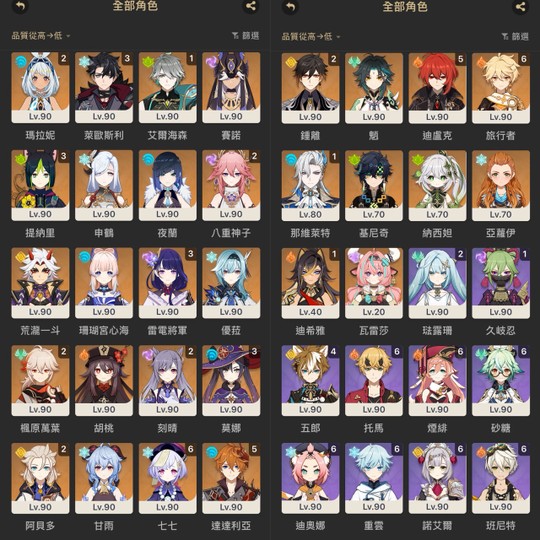 【男、60等、28金角、27金武】超值99金 3命萊歐雷神 2命瑪拉妮八重萬葉鍾離阿貝多 絕版翅膀 大保底