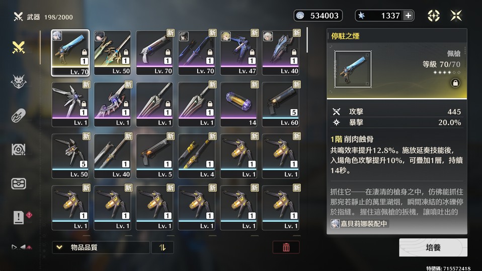 【45等、4金角、2金武】亞服 限定 嘉貝莉娜/仇遠