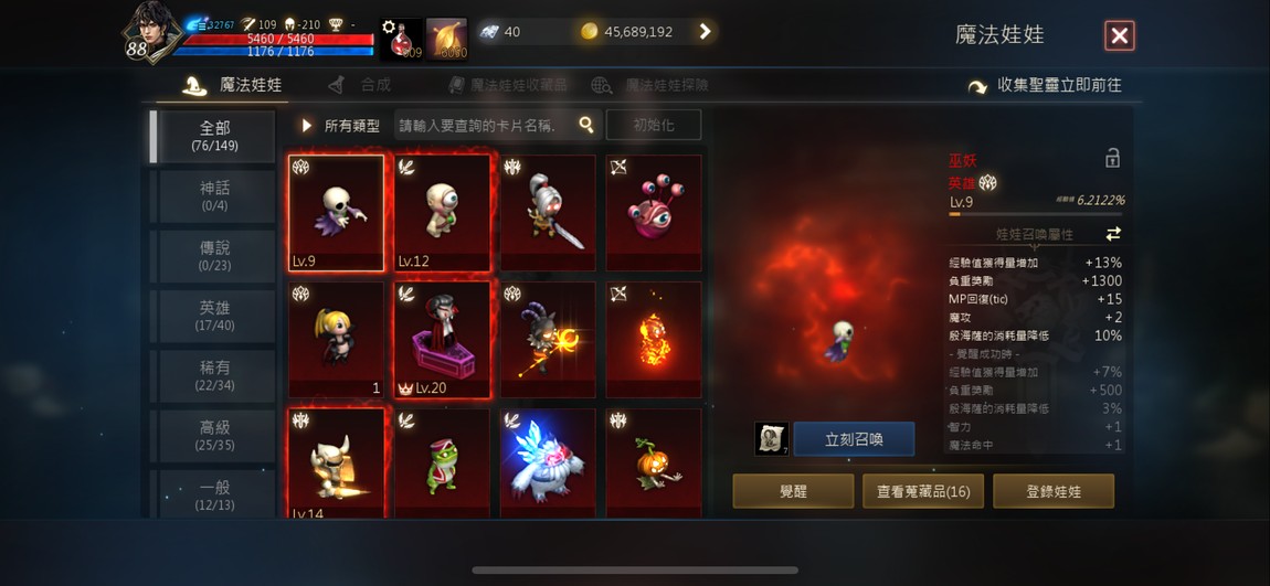 【魔劍士、88等、鐮刀死神】主打2紫變,攻擊109物防210魔防255很坦,沒誠意的價不浪費時間哦!