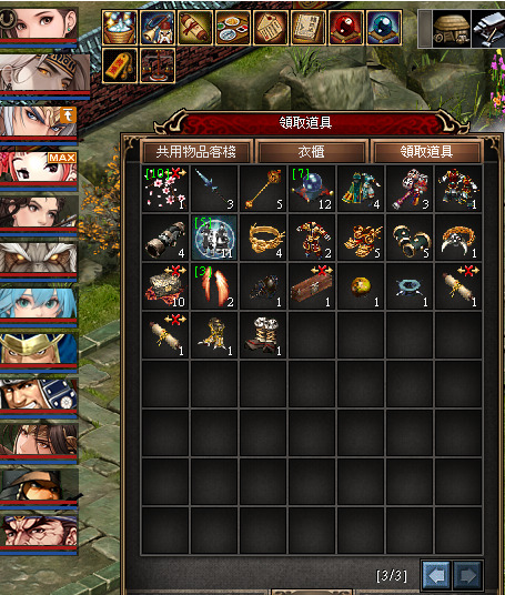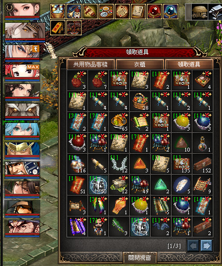 其他值錢雜物等: 日冥頭1 龜天符1 高日兇武1 覺龍天頭1 225天王套戒 黃帝套戒 另外還有1套天照套戒 3-4套拔都套戒 黑蓮針1 分身藍娃2 +0水套3/4 火套2 雪女證1 太皇戒2 將軍戒4 可易太皇套數套 古土 77顆 古水189 古雷9顆 古火69 死神精氣雷13 封書6 覺石5 封珠7 力根5 黑氣72 生藥1 時粉36 屬粉7 紅色蛋1 金色蛋2 銀白色蛋4 鳳毛19 不死毛9 白衣9 禁白衣3 挑符51 日入1 明入2 台入1 印女入1 重生書1 小地石135 小水石242 小風石228 小火石238 精雷碎86 靈魂結晶84 英雄靈魂石1764 282封碎 封塊3 479英金 80糧食 250次團宴28 縮地229 一石5天16 一石1天8 其他日用品各200-300顆 記憶水板264 水印60 力量記憶232 深精12 生精48 覺石碎6 初級怪包1 500經書*1042