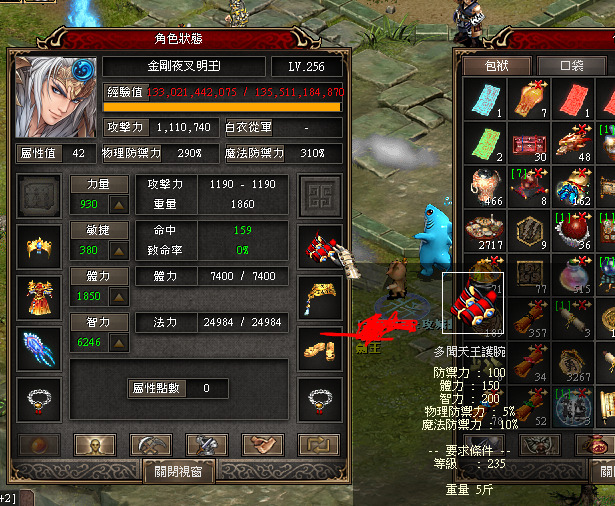260印冥接近完美(沒開星宿) 裝備:龍天套 印冥武 拔都戒2