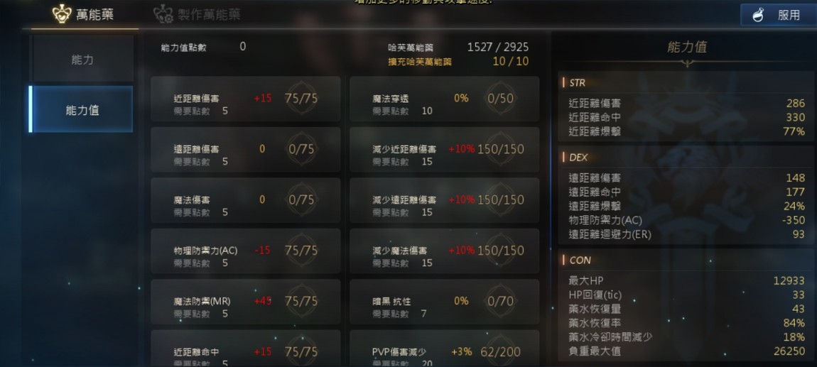 PVP裝無袋子:傷害303、防345、魔防523 減免81、