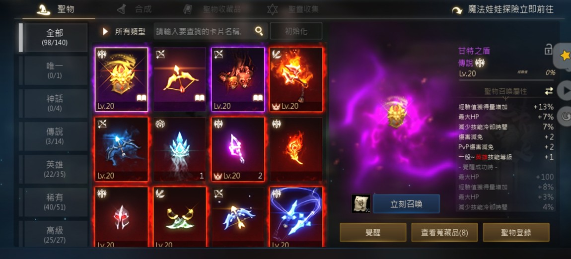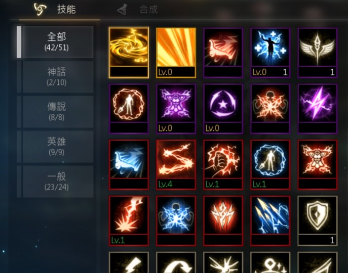 技能:2金、滿紫重複2紫技【有商城紫、血盟特殊紫】、滿紅技(Lv4/1/1/1)