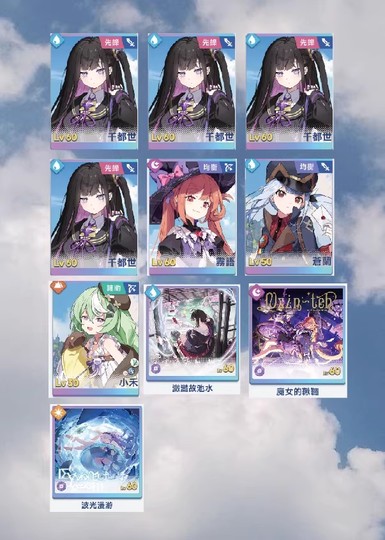 【60等】10SSR 3命千都世+專武(瀲灩)+霧語+專武(魔女)+蒼蘭+小禾+(波光)