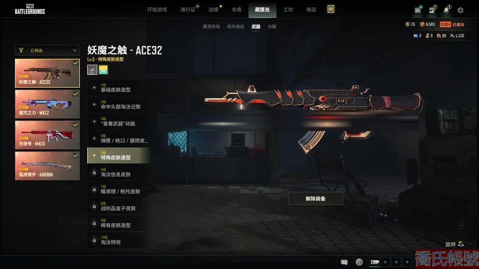 生存等級221;成長型武器4;槍皮155;載具14;成長型武器:LV5妖魔之觸