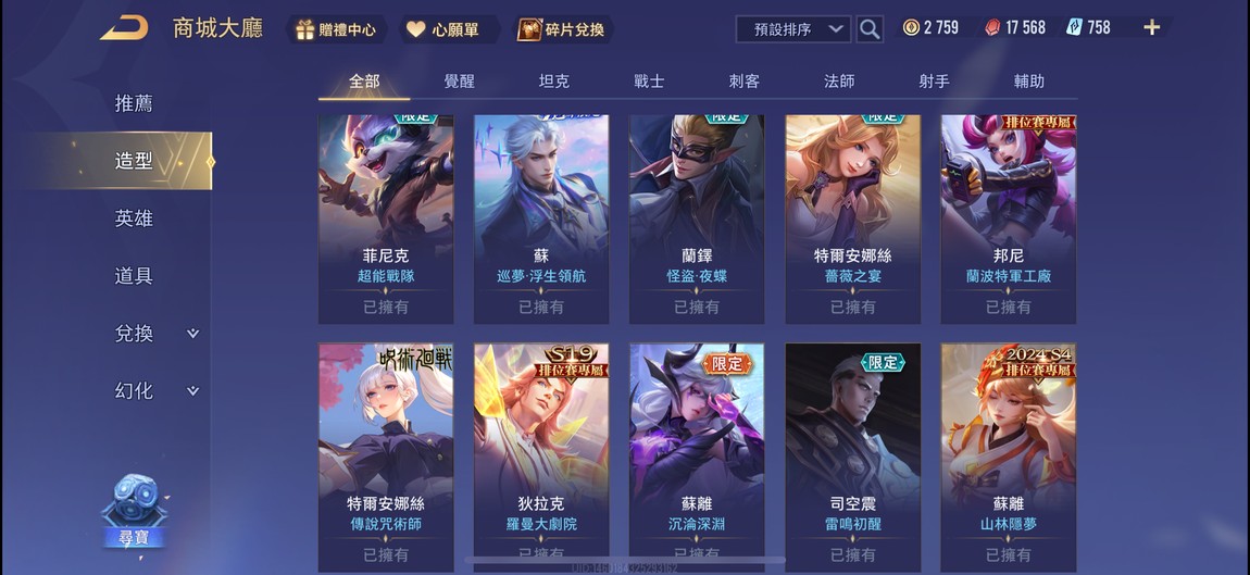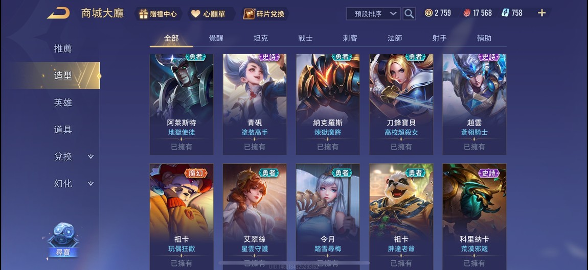 【Garena帳有綁定、鑽石、V8、75英、134造】主打 五條 虎杖 基德 整套 命運之淵 8500直下