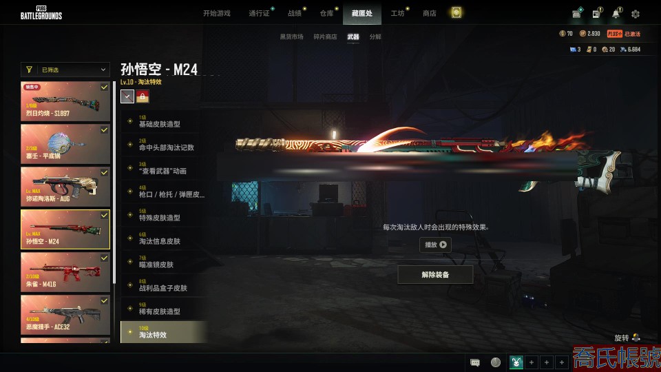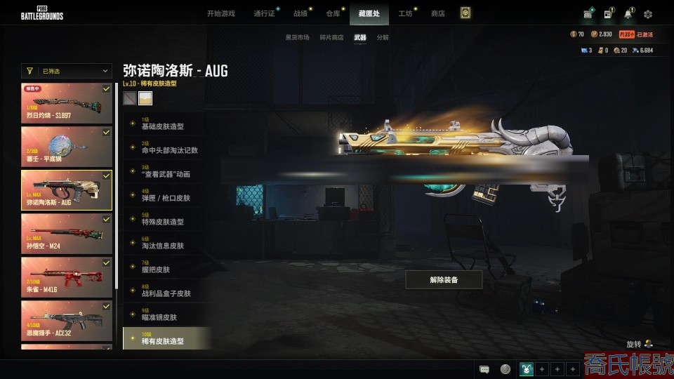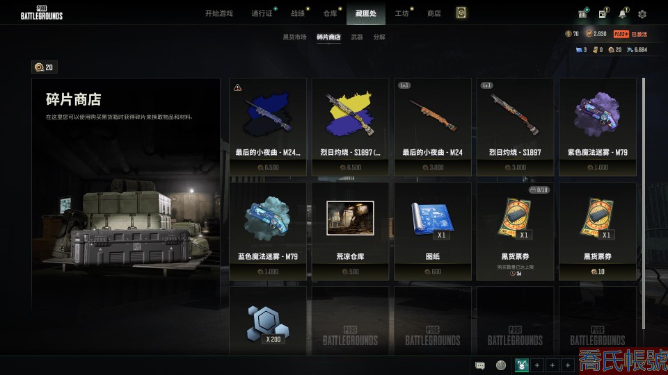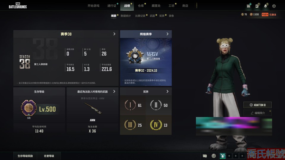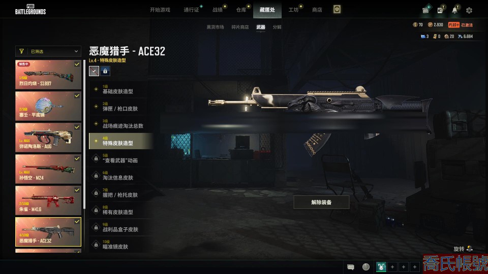 生存等級2500;異色皮膚1;成長型武器8;槍皮81;載具16;熱門物品:PG