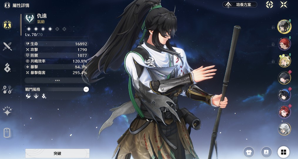 運氣挺好的,仇遠聲骸洗沒幾次就畢業了 全雙爆數值也不錯