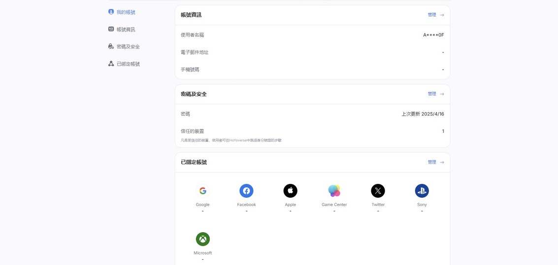 物品種類: 帳號