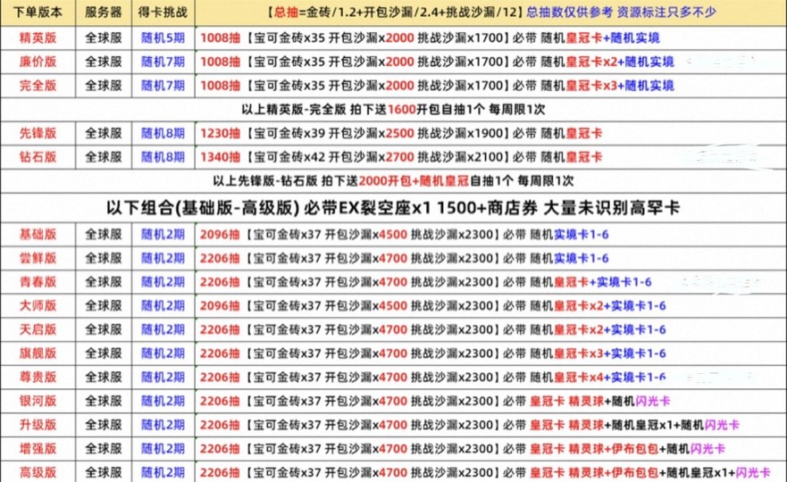 以下組合(基礎版-高級版)必帶EX裂空座x1 1500+商店券