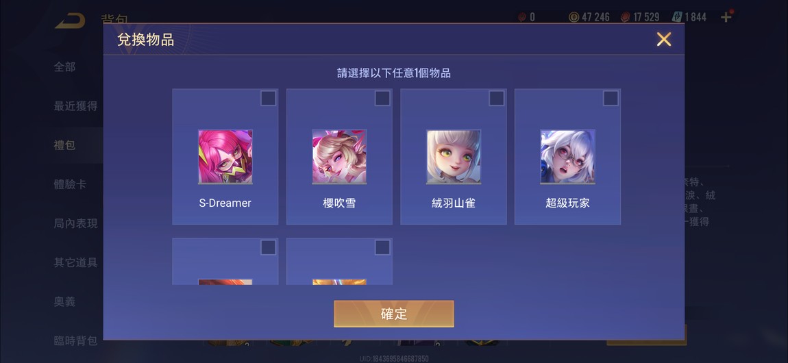 物品種類: 帳號