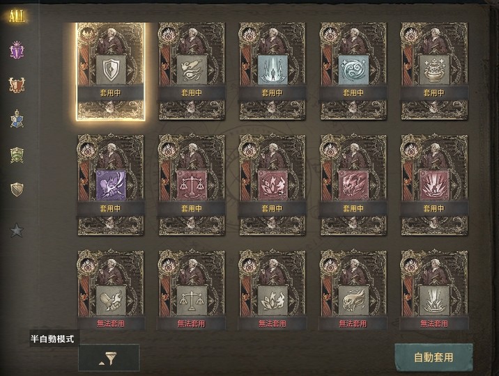 徽章:+10血盟-勇猛(紫)、+10血盟-守護(紫)、+9血盟-智慧(紫)