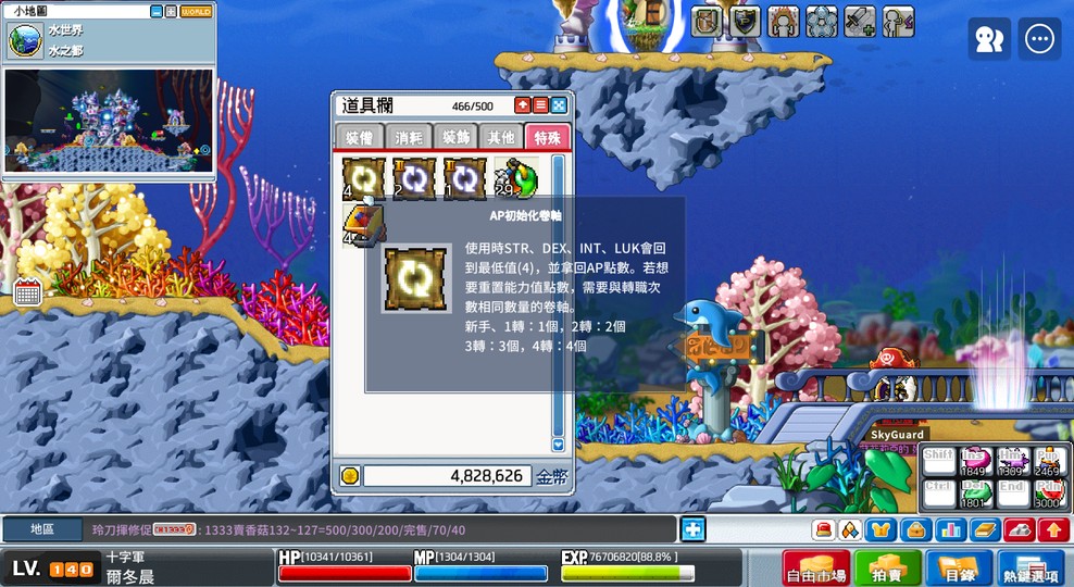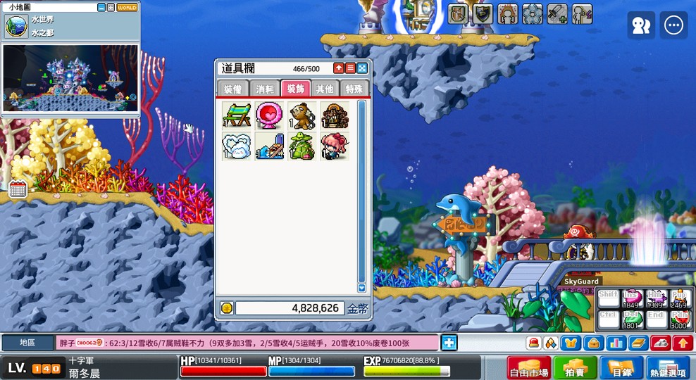 整身不拆含裝備.背包內點商.卷軸等等.必定留至少百雪及可練等基本藥水