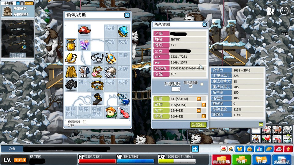 還有70幾個護身符,傳送石90幾顆,能力值重置3顆,雪210,6000多WC,三件套