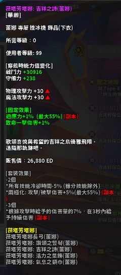 蕾娜 薇塔芳塔娜 生命右三(上衣+下衣+項鍊)免衣櫥