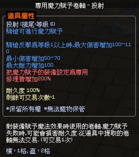 ♥優小皮♥真心推薦〝投射捲〞騎槍接尾賦予首選│大傷100~110