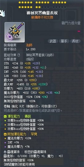 【神秘冥界幽靈長杖】22星 95%BOSS+17%魔攻7%INT 6排 傳罕 救世卷軸 2026更新