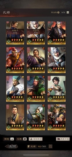 武器:專武 雄列2、武聖1、天公1、無雙1、靈動5、援助1、好學2、斯風1 等等