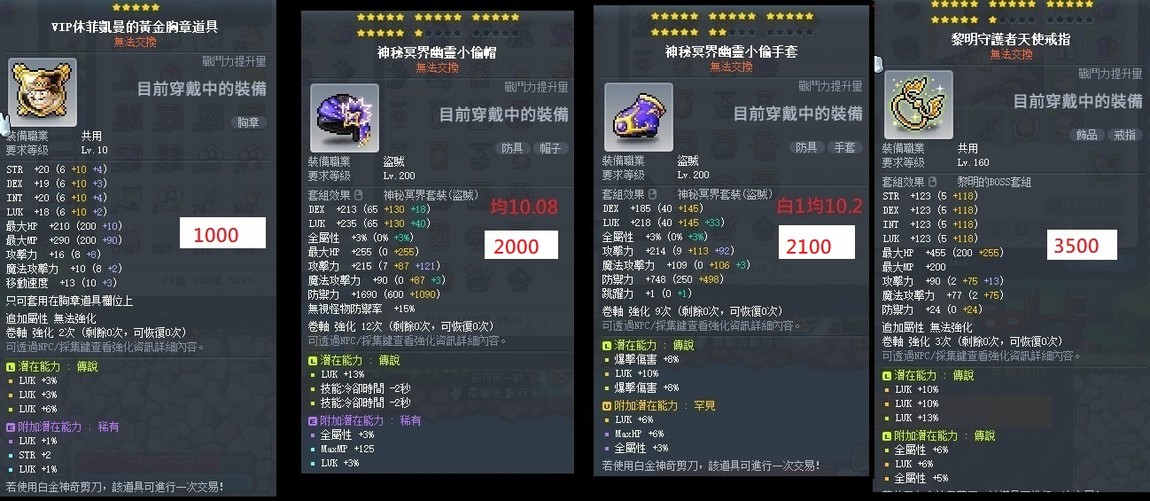 【22~25C %幸】盜賊退谷,成品神祕 漆黑裝、天上、掉寶裝、雙終幸、滅龍、頂培、副武、%力%敏%智