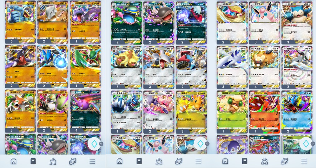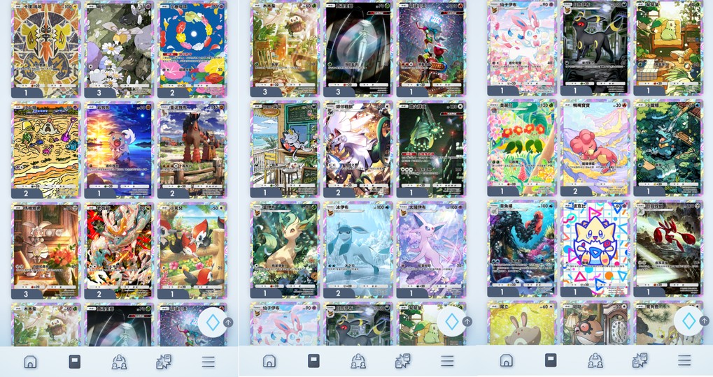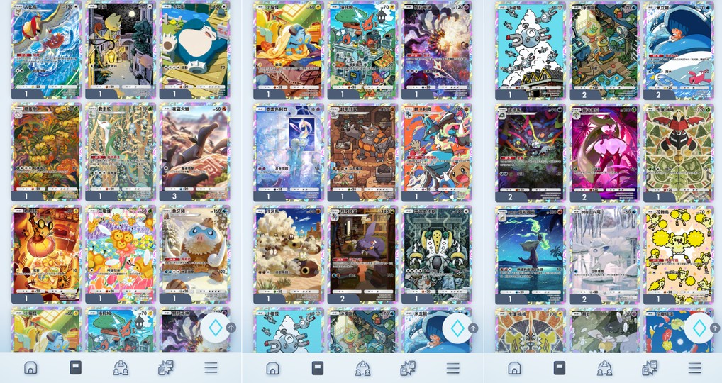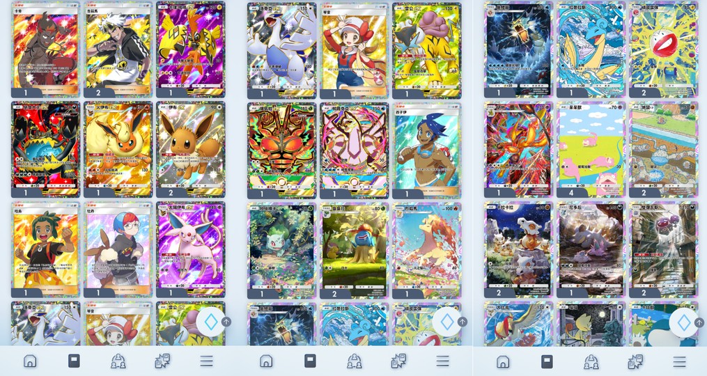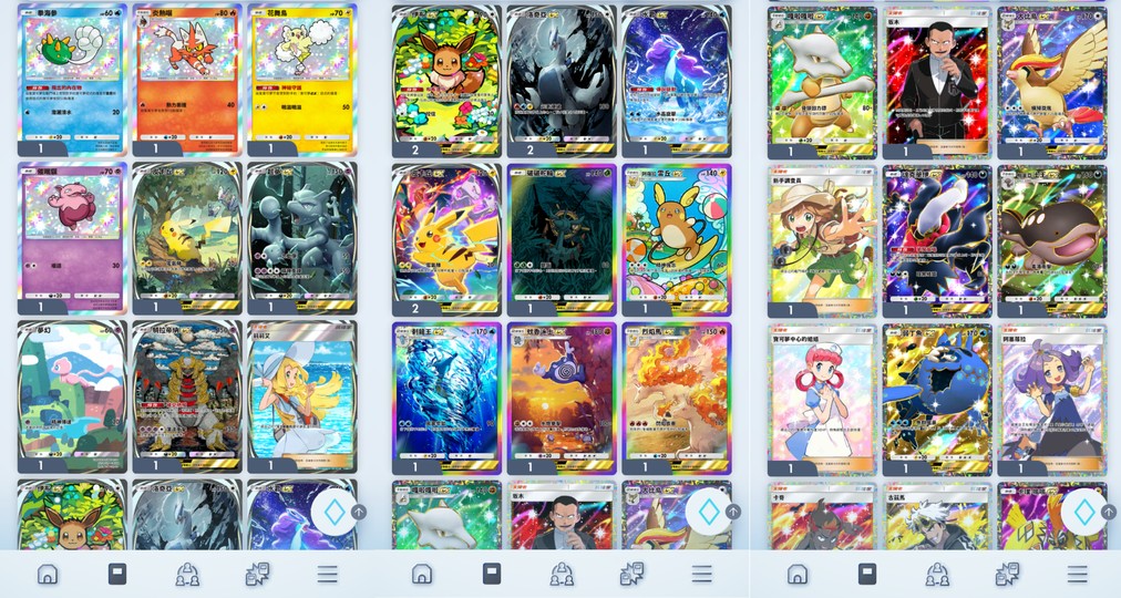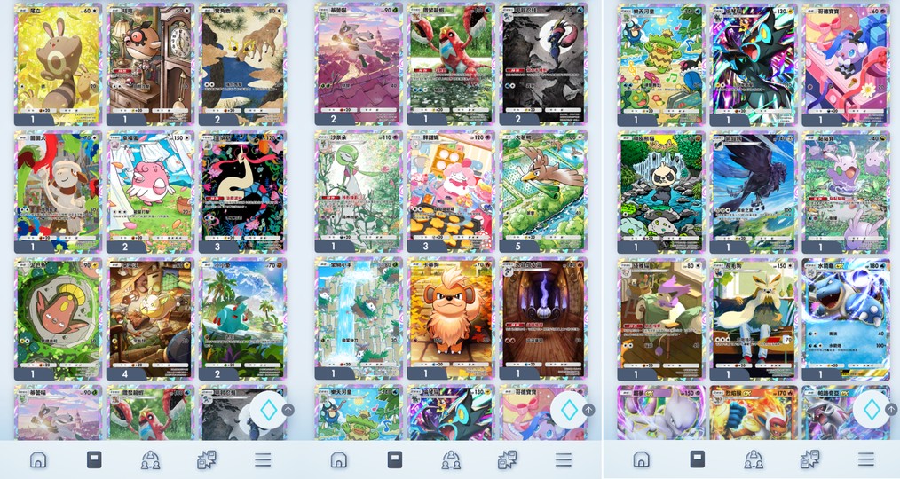 ✦ 最強基因:215/226 ║ 幻遊島:64/68 ║ 時空激鬥:134/155 ║ 超克之光:61/75 ║ 嗨放異彩:72/72(全圖鑑) ║ 雙天守護者:151/155 ║ 異次元危機:69/69(全圖鑑) ║ 伊布花園:69/69(全圖鑑) ║ 天與海的指引:145/161 ║ 未知水域:71/71(全圖鑑) ║ 超級崛起:148/226 (最新卡包!)