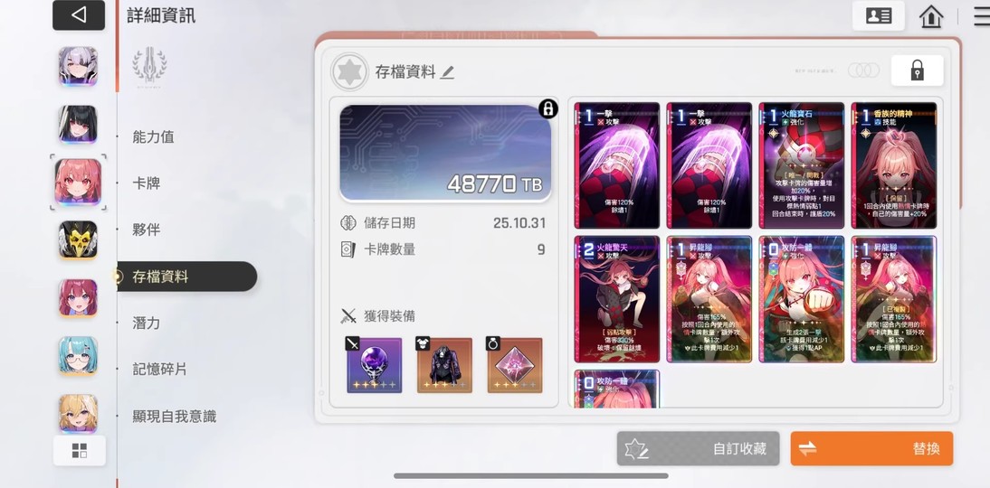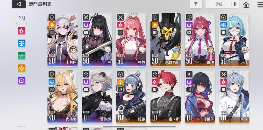 梅鈴和小醜還有米卡卡莉佩已經畢業了(卡組多難刷自己玩了就知道了),其他角色也差不多了,這號蠻歐的了,基本上30多發一個彩角色