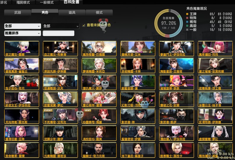 可打: 一般/團死/災厄/戰神/殭屍系列(各種模式)