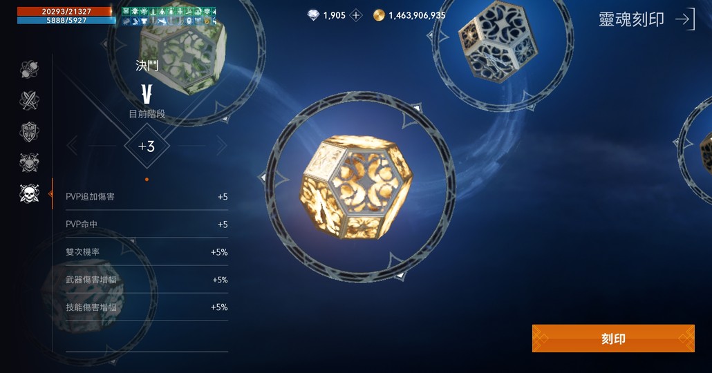 ★靈魂刻印:靈魂彈10-3、鬥志8-3、守護5-3、征服5-3、決鬥5-2