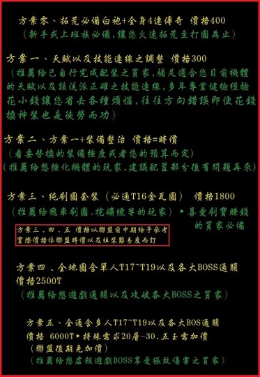 畢業套價位 包全通 2500~50000(依聯盟時價調整)的套裝都有 差異在於傷害以及生存請善用小窗詢問