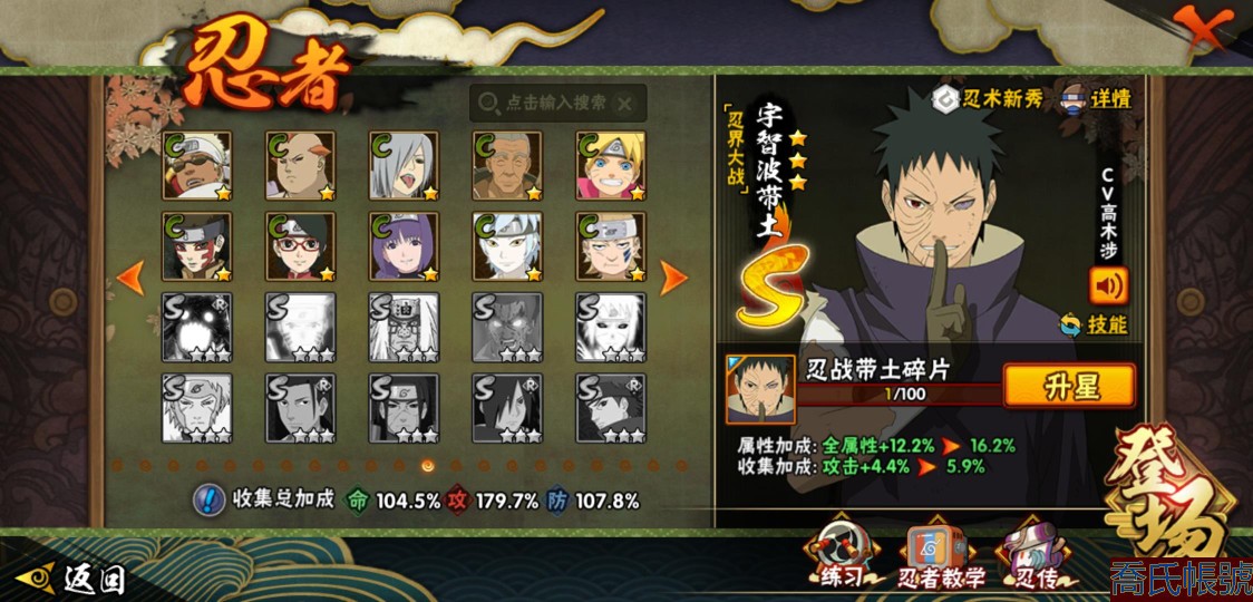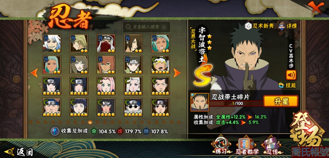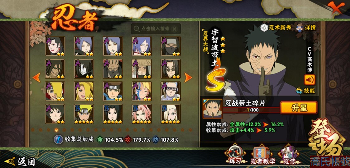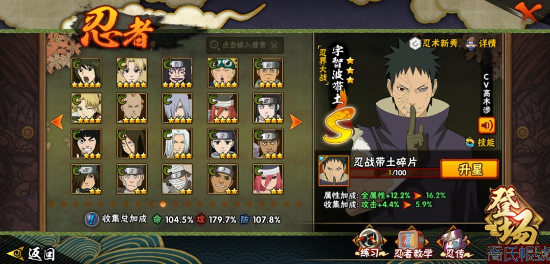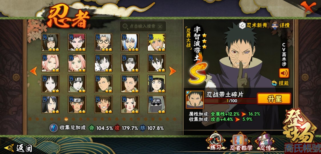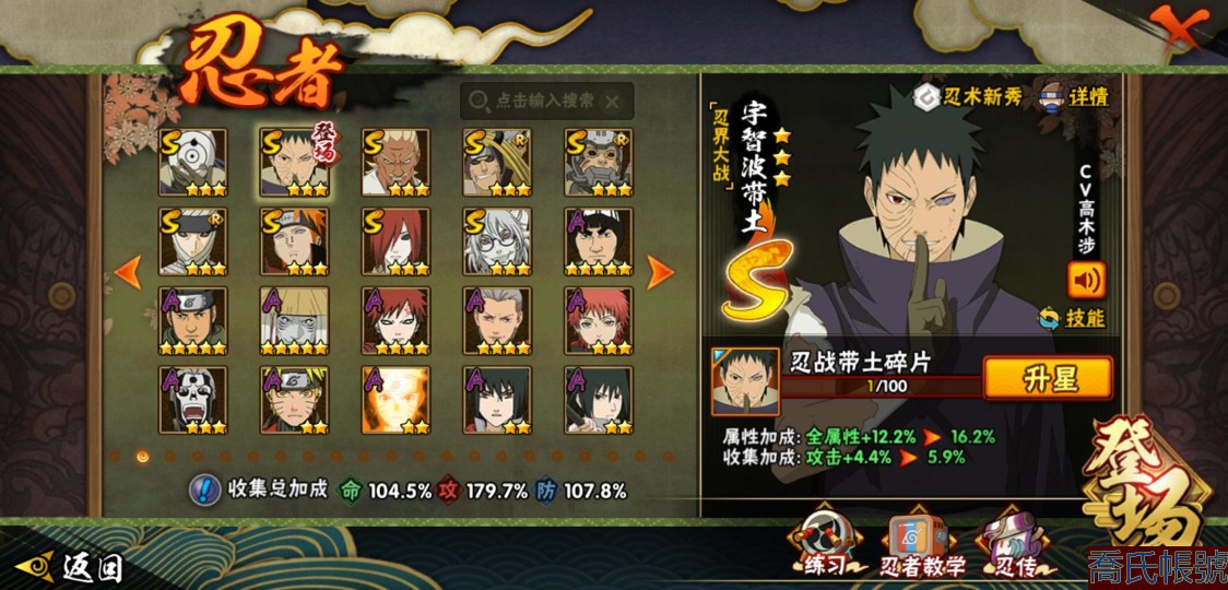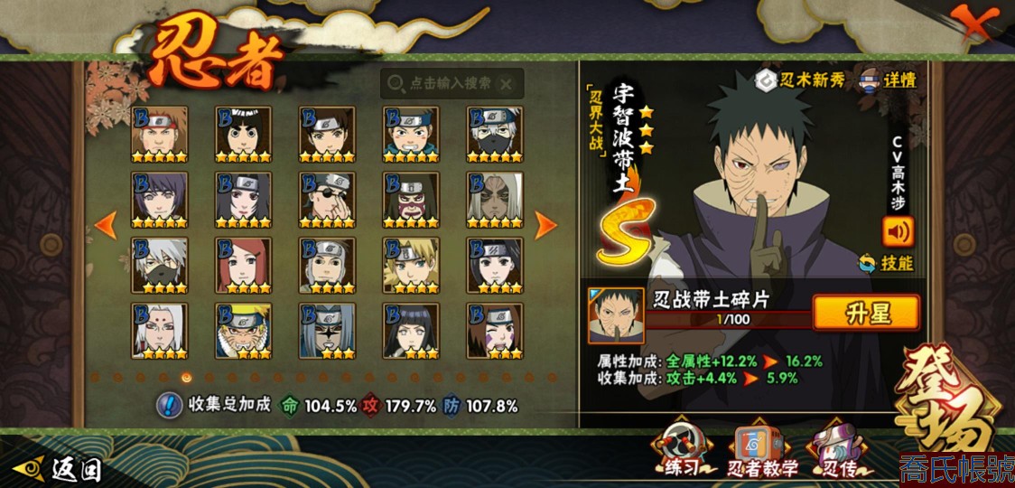 【11等】戰鬥力:1210W+;段位:中忍2階;本服排名:314;戰區排名:未上榜;V