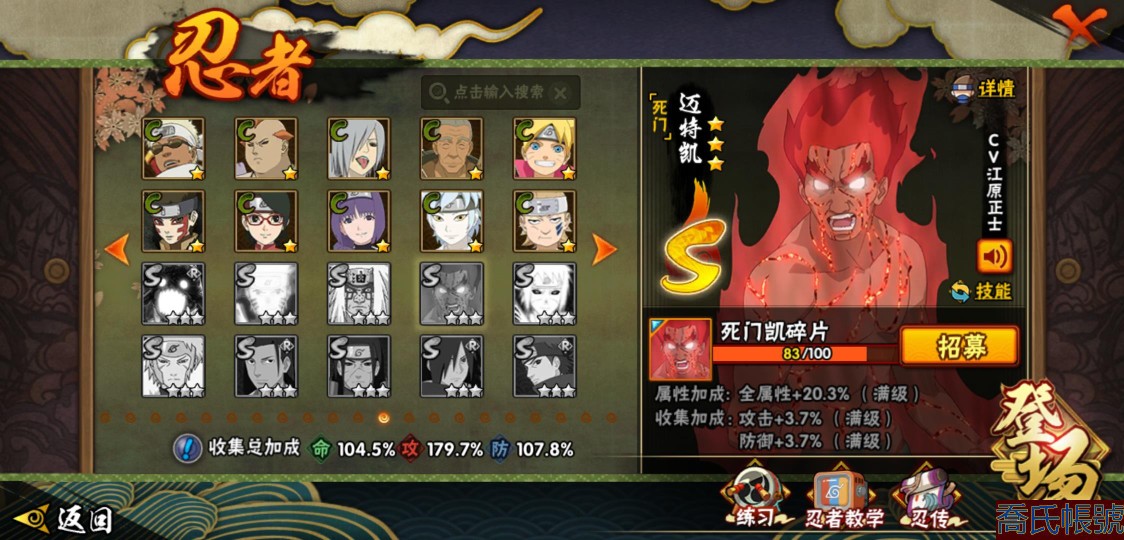 【OBHLLHW829042】戰鬥力:1210W+;段位:中忍2階;本服排名:314;戰區排名:未上榜;VIP11級;S忍29個;A忍47個;通靈獸20個;S忍:永恆萬花筒宇智波佐助,忍界大戰春野櫻,須佐能乎旗木卡卡西,自來也,舞之豪傑自來也,傳說中的三忍自來也,大蛇丸,百豪綱手,綱手,波風水門,穢土轉生波風水門,猿飛日斬,穢土轉生猿飛日斬,穢土轉生千手扉間,千手柱間,宇智波斑,穢土轉生宇智波斑,穢土轉生解宇智波斑,須佐能乎宇智波鼬,穢土轉生宇智波鼬,白面具宇智波斑,忍界大戰宇智波帶土,忍界大戰艾,穢土轉生金角銀角,穢土轉生半藏,二代目土影無,天道佩恩,穢土轉生長門,仙人模式藥師兜;A忍:邁特凱(5星),猿飛阿斯瑪(5星),幹柿鬼鮫(5星),疾風傳我愛羅(4星),飛段(4星),蠍(3星),死司憑血飛段(3星),仙人模式漩渦鳴人,九尾查克拉漩渦鳴人,萬花筒寫輪眼宇智波佐助,須佐能乎宇智波佐助,宇智波泉奈,百豪春野櫻,忍界大戰秋道丁次,忍界大戰日向寧次,忍界大戰李洛克,最終章日向雛田,幻之真容旗木卡卡西,萬花筒寫輪眼旗木卡卡西,宇智波止水,新春限定波風水門,青年波風水門,忍界大戰我愛羅,近松十人衛千代,俠隱江湖照美冥,五代目水影照美冥,漂泊武士桃地再不斬,穢土轉生桃地再不斬,忍界大戰奇拉比,奇拉比,半蛇斗篷藥師兜,不緣,小南,夏日泳裝小南,漂泊浪客小南,曉創生角都,穢土轉生角都,曉大蛇丸,緋流琥蠍,宇智波鼬,新春限定宇智波鼬,迪達拉,穢土轉生迪達拉,猿飛木葉丸,桃式顯現漩渦博人,六代目水影長十郎,四代目土影黑土;通靈獸:忍犬,藍蛇,蛤蟆吉,忍龜,鐮鼬,猿魔,山椒魚,蜃,蛤蟆仙人,鮫鯊,蛤蟆健,烏鴉,蛞蝓,蛤蟆龍,砂之守鶴,蛤蟆廣,熊貓,夢貘,辛牙;時裝:百戰佩恩天道,百戰宇智波鼬須佐能乎,百戰波風水門,蜀面豪傑舞之豪傑自來也,太極靈韻日向花火武當宗師,血霧怪人幹柿鬼鮫,熊貓少女天天峨眉宗師,火之意志綱手百豪,編織虛實宇智波鼬,可愛睡衣漩渦鳴人,緋櫻綻放春野櫻百豪;【1038】
