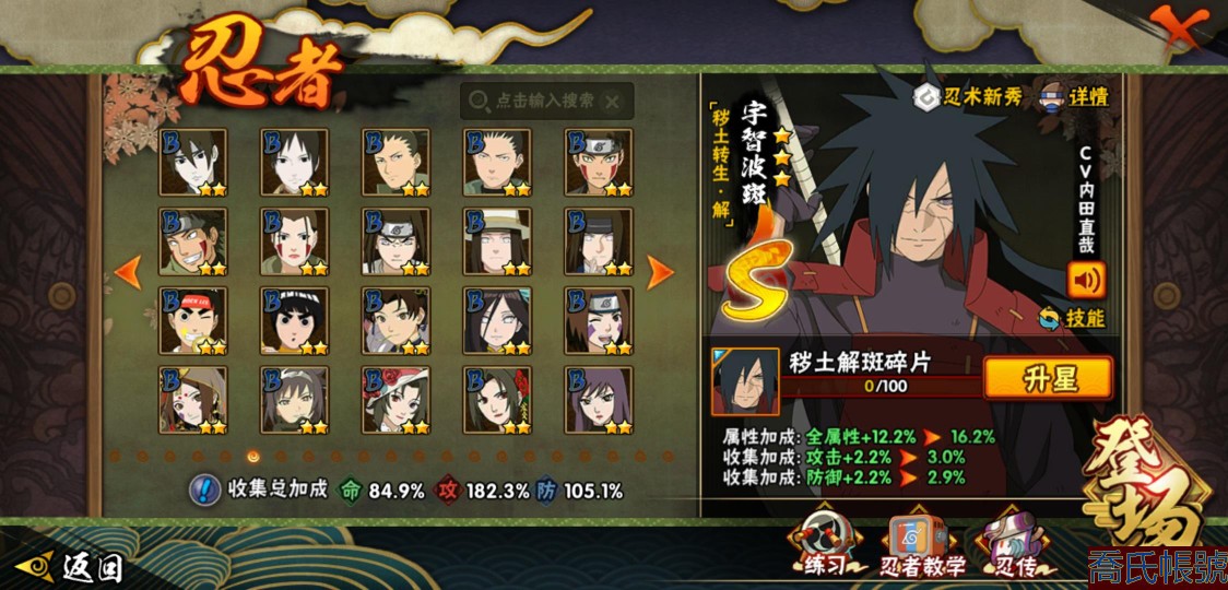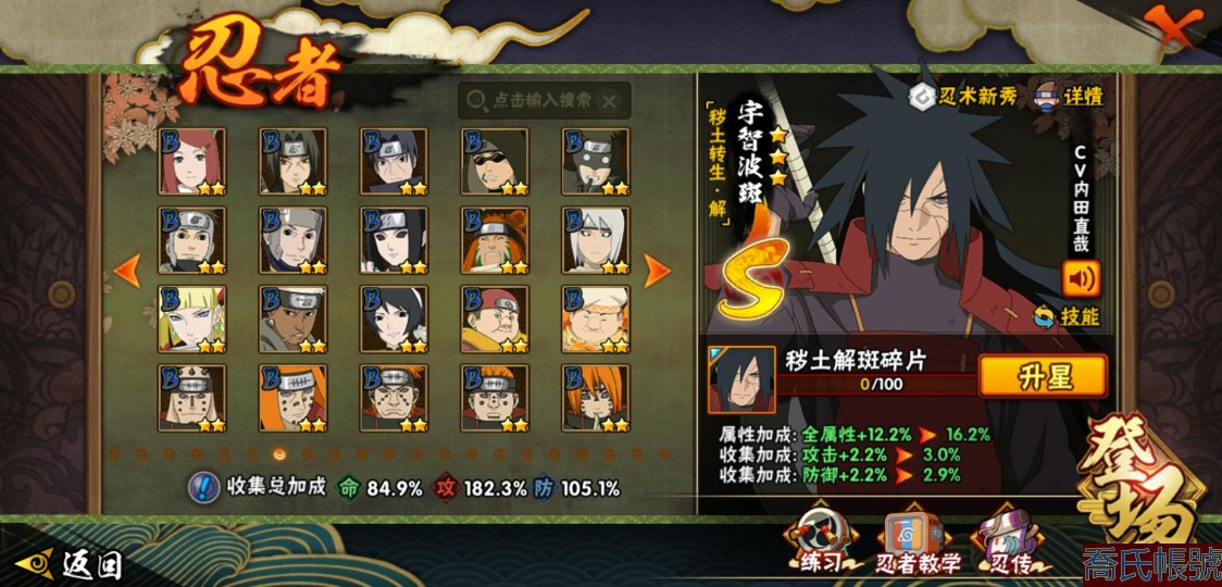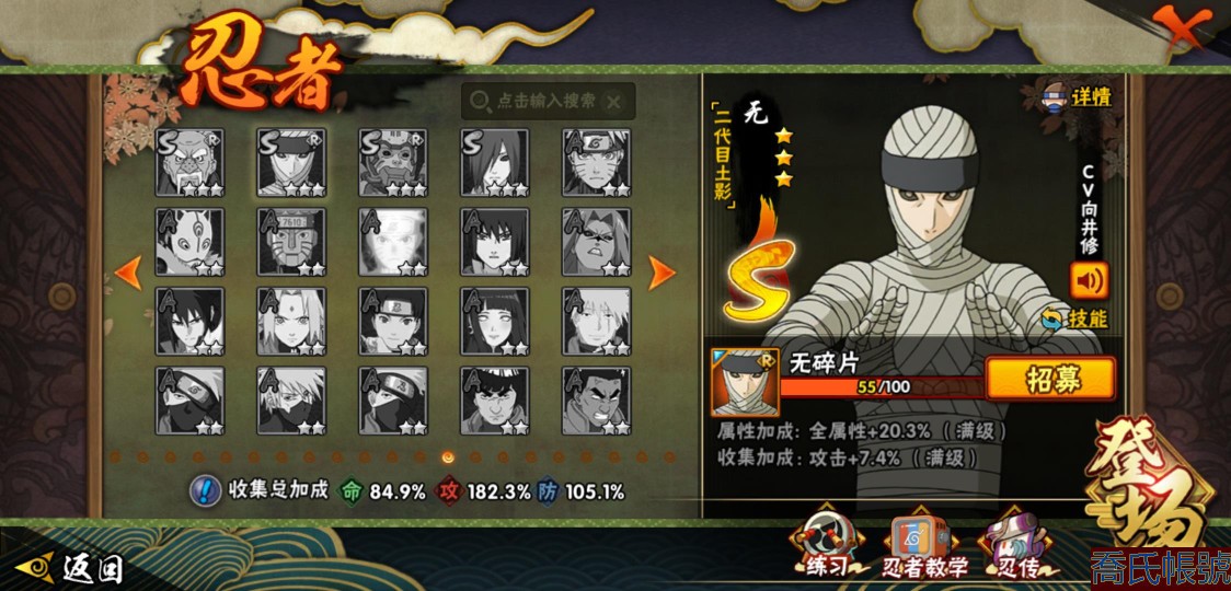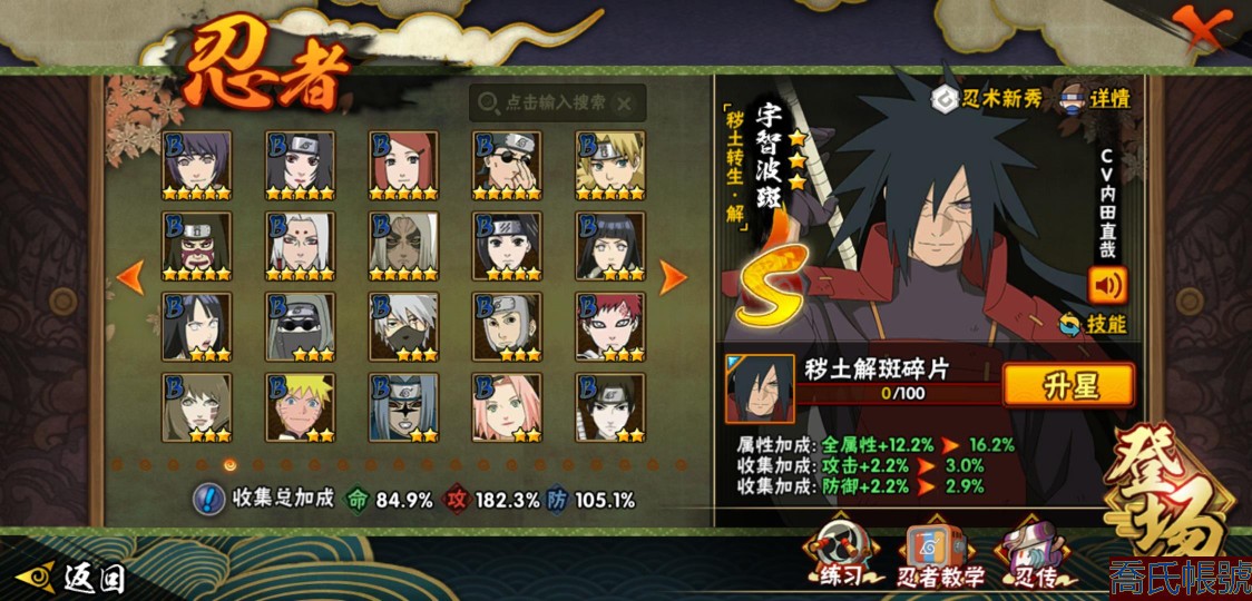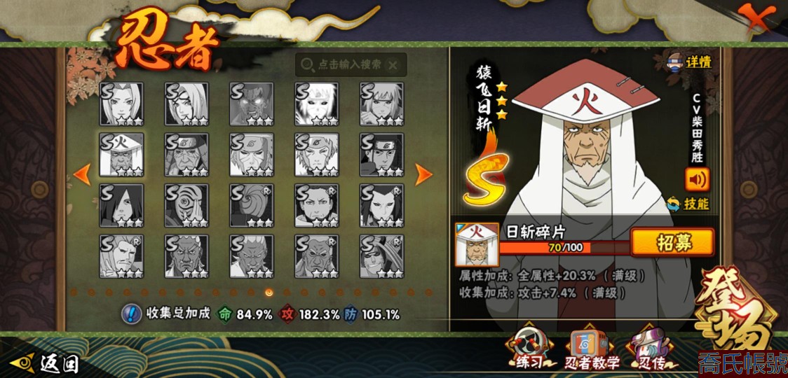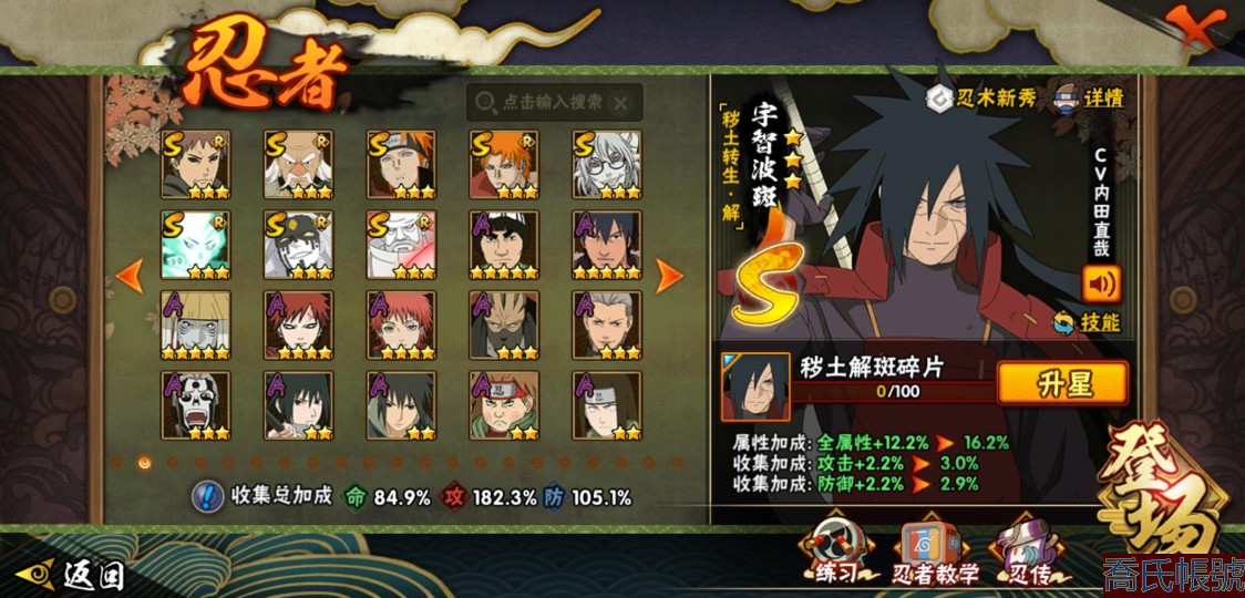 【OBHLLHW998042】戰鬥力:1263W+;段位:中忍1階;本服排名:105;戰區排名:未上榜;VIP11級;S忍28個;A忍42個;通靈獸20個;S忍:暴怒第六尾漩渦鳴人,九喇嘛連結漩渦鳴人,永恆萬花筒宇智波佐助,忍界大戰春野櫻,須佐能乎旗木卡卡西,舞之豪傑自來也,傳說中的三忍自來也,大蛇丸,波風水門,木葉創立千手柱間,穢土轉生千手柱間,穢土轉生宇智波斑,木葉創立宇智波斑,穢土轉生解宇智波斑,須佐能乎宇智波鼬,穢土轉生宇智波鼬,須佐能乎宇智波止水,白面具宇智波斑,忍界大戰宇智波帶土,紅夜之刃神秘面具男,四代目風影羅砂,忍界大戰大野木,天道佩恩,超佩恩天道,仙人模式藥師兜,最終章大筒木舍人,大筒木桃式,大筒木金式;A忍:邁特凱(5星),猿飛阿斯瑪(5星),幹柿鬼鮫(5星),疾風傳我愛羅(4星),蠍(4星),緋流琥蠍(3星),飛段(3星),死司憑血飛段(3星),須佐能乎宇智波佐助,宇智波泉奈,忍界大戰秋道丁次,忍界大戰日向寧次,忍界大戰李洛克,元氣夏日旗木卡卡西,宇智波止水,青年波風水門,忍界大戰我愛羅,近松十人衛千代,五代目水影照美冥,穢土轉生桃地再不斬,奇拉比,忍界大戰奇拉比,青年艾,漂泊武士千手扉間,不緣,不動,青年長門,漂泊浪客佩恩六道,小南,漂泊浪客小南,穢土轉生角都,宇智波鼬,迪達拉,穢土轉生迪達拉,漂泊浪客宇智波帶土,俠隱江湖大野木,火之意志繼承者卑留呼,羈絆神農,五代目雷影達魯伊,六代目水影長十郎,桃式顯現漩渦博人,四代目土影黑土;通靈獸:忍犬,藍蛇,砂之守鶴,蛤蟆吉,忍龜,鐮鼬,猿魔,山椒魚,蜃,蛤蟆仙人,鮫鯊,蛤蟆健,蛞蝓,烏鴉,蛤蟆龍,蛤蟆廣,熊貓,夢貘,鷹;時裝:百戰大蛇丸,百戰佩恩天道,桀驁之刃猿飛阿斯瑪,蜀面豪傑舞之豪傑自來也,百戰波風水門,百戰宇智波鼬須佐能乎,太極靈韻日向花火武當宗師,熊貓少女天天峨眉宗師,烈土霓裳黑土四代目土影,風之守護我愛羅忍界大戰,傳說的光芒波風水門,睿勇新星千手扉間少年,血霧怪人幹柿鬼鮫,緋櫻綻放春野櫻百豪,龍的傳人李洛克截拳宗師,編織虛實宇智波鼬,剎那的藝術迪達拉,夏日衝浪旗木卡卡西元氣夏日;【2474】28s 42a