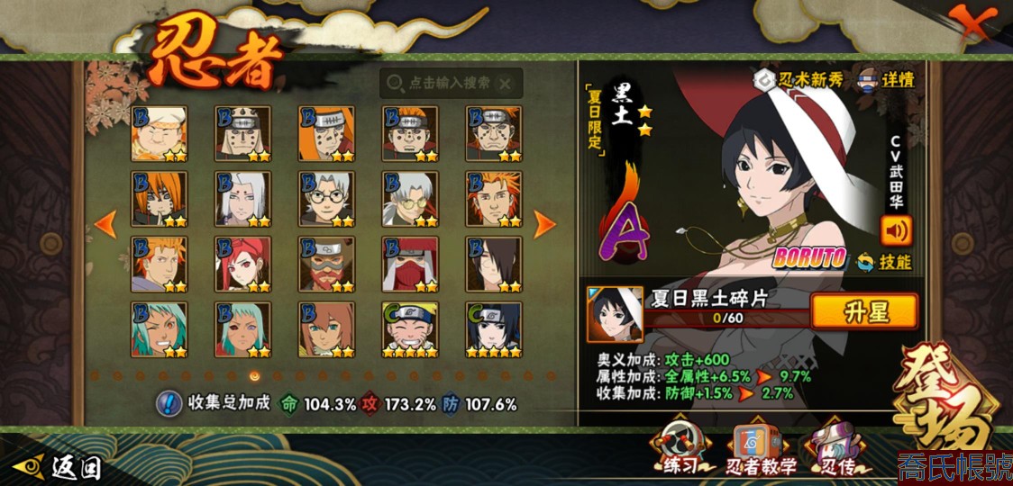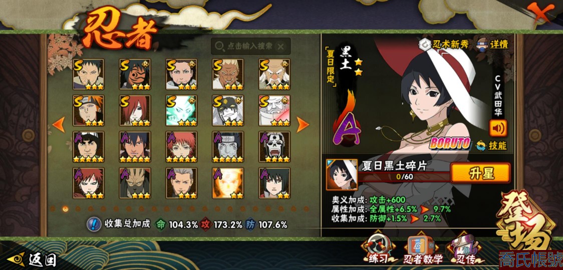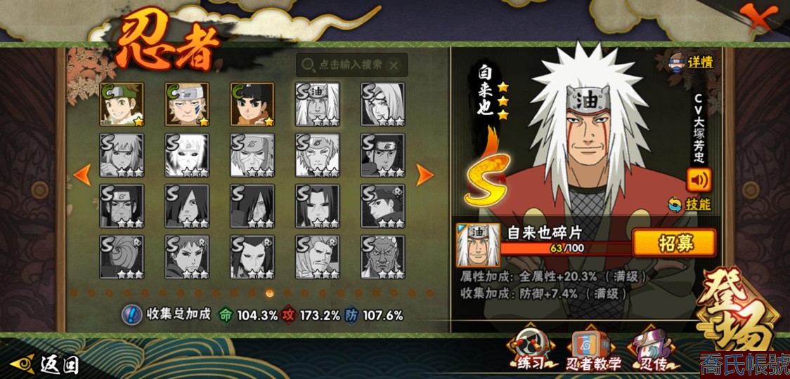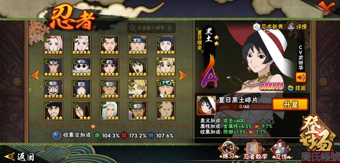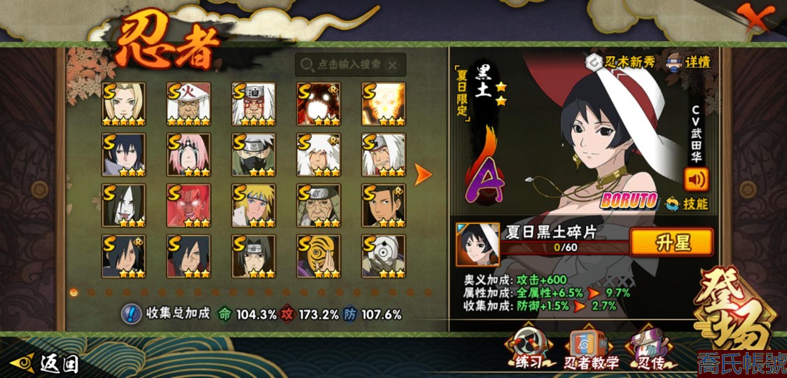 【OBHLLHW585242】戰鬥力:1711W+;段位:上忍1階;本服排名:35;戰區排名:未上榜;VIP11級;S忍30個;A忍45個;通靈獸24個;S忍:綱手(5星),猿飛日斬(5星),仙人模式自來也(4星),暴怒第六尾漩渦鳴人,九喇嘛連結漩渦鳴人,永恆萬花筒宇智波佐助,忍界大戰春野櫻,須佐能乎旗木卡卡西,舞之豪傑自來也,傳說中的三忍自來也,大蛇丸,死門邁特凱,波風水門,穢土轉生猿飛日斬,木葉創立千手柱間,木葉創立宇智波斑,穢土轉生解宇智波斑,須佐能乎宇智波鼬,神秘面具男,白面具宇智波斑,忍界大戰宇智波帶土,紅夜之刃神秘面具男,初代目風影烈鬥,忍界大戰艾,忍界大戰大野木,天道佩恩,穢土轉生長門,最終章大筒木舍人,大筒木桃式,大筒木金式;A忍:邁特凱(5星),猿飛阿斯瑪(5星),蠍(5星),幹柿鬼鮫(5星),死司憑血飛段(4星),疾風傳我愛羅(3星),緋流琥蠍(3星),飛段(3星),九尾查克拉漩渦鳴人,萬花筒寫輪眼宇智波佐助,須佐能乎宇智波佐助,宇智波泉奈,百豪春野櫻,忍界大戰秋道丁次,忍界大戰日向寧次,忍界大戰李洛克,最終章日向雛田,宇智波止水,青年波風水門,忍界大戰我愛羅,近松十人衛千代,五代目水影照美冥,夏日泳裝照美冥,穢土轉生桃地再不斬,奇拉比,青年艾,半蛇斗篷藥師兜,不風,不緣,青年長門,夏日泳裝小南,漂泊浪客小南,黑絕,穢土轉生角都,宇智波鼬,夏日限定宇智波鼬,迪達拉,穢土轉生迪達拉,漂泊浪客宇智波帶土,羈絆神農,五代目雷影達魯伊,桃式顯現漩渦博人,六代目水影長十郎,四代目土影黑土,夏日限定黑土;通靈獸:忍犬,藍蛇,砂之守鶴,蛤蟆吉,忍龜,鐮鼬,猿魔,山椒魚,蜃,蛤蟆仙人,鮫鯊,蛤蟆健,烏鴉,蛞蝓,蛤蟆龍,怒鬼爪,蛤蟆廣,夢貘,萬蛇,怒鬼無臂,怒鬼,辛牙,鷹,蜘蛛;時裝:蜀面豪傑舞之豪傑自來也,桀驁之刃猿飛阿斯瑪,百戰波風水門,狂野鮫鯊幹柿鬼鮫,百戰宇智波鼬須佐能乎,百戰佩恩天道,百戰大蛇丸,太極靈韻日向花火武當宗師,晴浪礁歌黑土夏日限定,傳說的光芒波風水門,智勇記者宇智波佐良娜,緋櫻綻放春野櫻百豪,烈土霓裳黑土四代目土影,驕陽翠羽照美冥夏日泳裝,命定之戰宇智波佐助疾風傳,飛瀑流泉長十郎六代目水影,血霧怪人幹柿鬼鮫,驚雷掠影達魯伊五代目雷影,龍的傳人李洛克截拳宗師,熊貓少女天天峨眉宗師;【1000】便宜賣了
