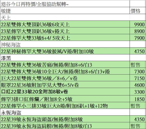 【退谷售價格好談~永恆/漆黑/天上/神秘/主副武/】退谷售都降價過!永恆/漆黑/天上/神秘/主副武/頂培,需開專屬