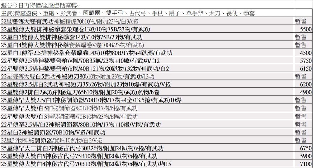 【退谷售價格好談~永恆/漆黑/天上/神秘/主副武/】退谷售都降價過!永恆/漆黑/天上/神秘/主副武/頂培,需開專屬