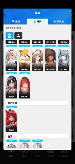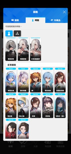 特殊時裝如圖所示、含絕版睡衣神罰、禮服紅帽、劍星聯動白蓮等~